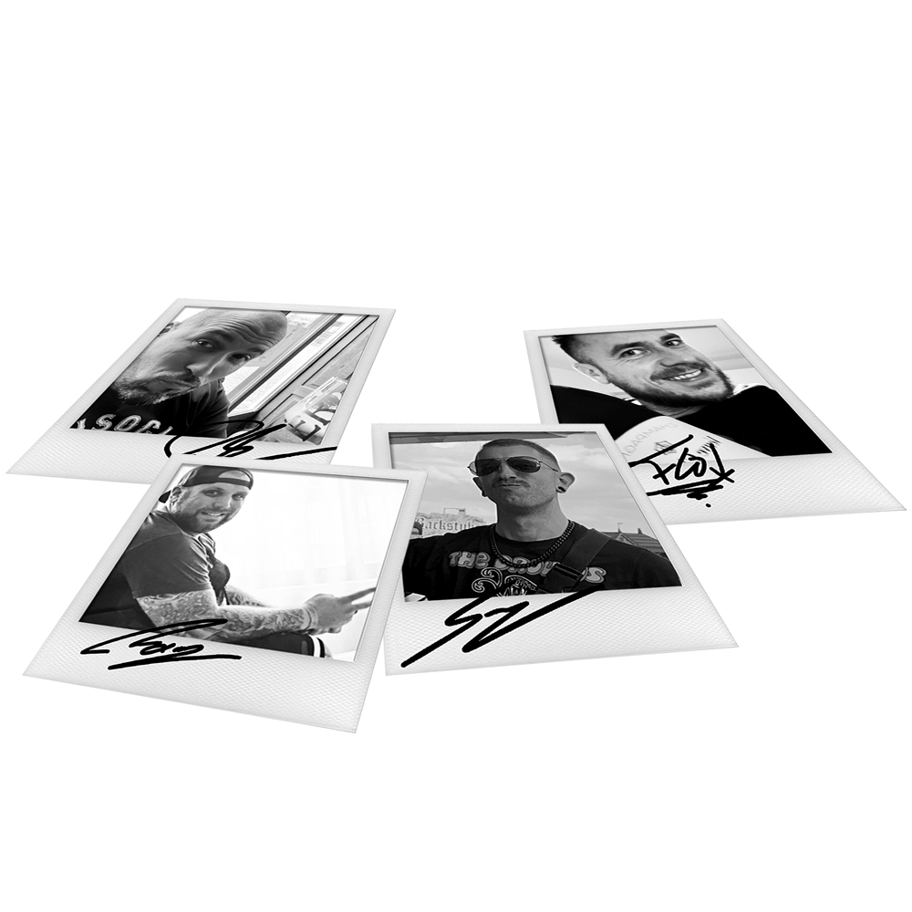 -4 signierte Polaroids - eins je Bandmitglied ausgewählt aus jeweils