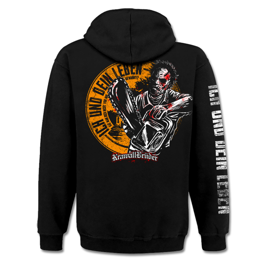 KrawallBrüder - Leatherface orange, Kapuzenpullover schwarz AKTION