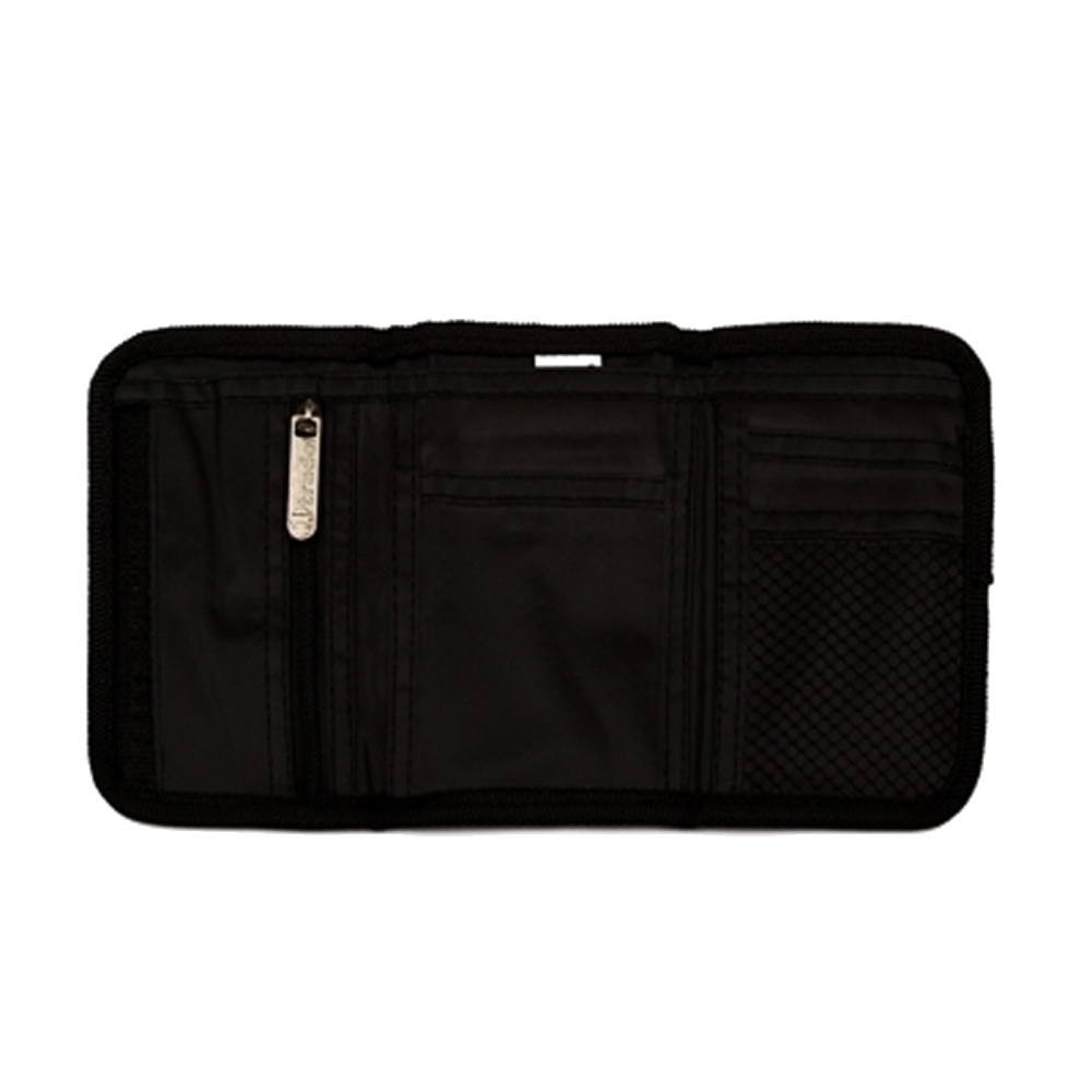 Schwarzer Geldbeutel mit Krawallbrüder-Logo.