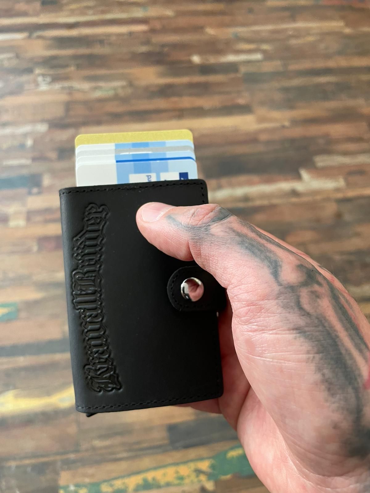 Kartenetui aus echtem Leder mit edlem KrawallBrüder Logo.